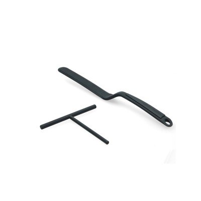 Комплектът включва два практични инструмента. Първият е Т-образна шпатула с ширина 14 см, която улеснява равномерното разпределяне на тестото върху тигана. Вторият е дълга обръщалка с практично огъване, която улеснява обръщането и сервирането на палачинките. Приборите са изработени от силикон.