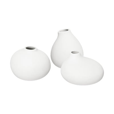 Например този комплект от 3 миниатюрни вази може да подкрепи перфектно стила на целия интериор. Вазите са изработени от устойчив неглазиран порцелан, затова повърхността им остава малко грапава.