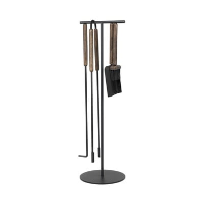 Дървените дръжки имат интегриран магнит, който държи инструментите здраво на поставката, когато не се използват. Това превръща комплекта за камина и в декоративен аксесоар. Лопатата, четката и покерът изглеждат така, сякаш летят по металната конструкция. Щипките просто се окачват на горното стъпало.