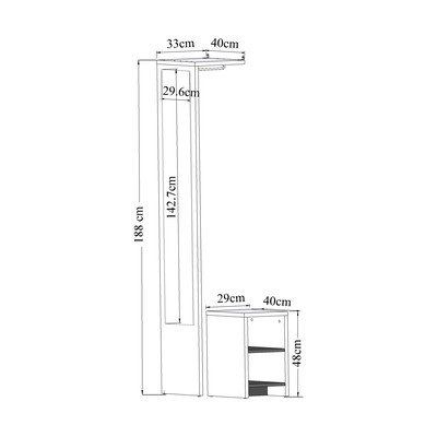 Комплект за коридор VestibuloОт декор от дъб , ПДЧ, oбработка на повърхността: меламин, в естествен цвят, ширина 40 cm, височина 188 cm, дълбочина 33 cm