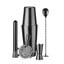 Комплектът включва шейкър, който се състои от две части с вместимост 500 ml и 800 ml, което улеснява смесването на различни видове напитки. Има и удобна мерителна чаша с обеми 50 ml и 25 ml за прецизно дозиране на съставките. Барманската лъжица с дължина 27 см и вместимост 5 мл е идеална за разбъркване и наслояване, а пестикът помага за смачкване на билки или плодове. Комплектът се допълва от цедка за перфектно отделяне на леда и твърдите частици от готовия коктейл.
