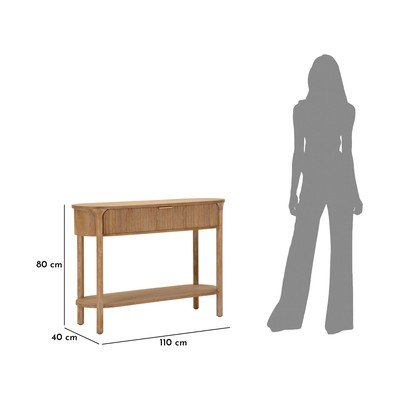 Масата е оборудвана с практично чекмедже за съхранение на дребни предмети, чиито вътрешни размери са 81,5 x 30 x 11 см. Между горния и долния рафт има пространство от 44 см, което предлага допълнително място за декорации или съхранение. Дизайнът му с тънки крачета го прави да изглежда ефирен и лек.