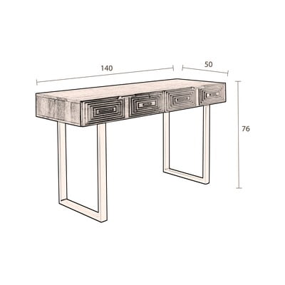 Докато желязната основа се грижи за солидна и стабилна основа, дъската от масивно дърво може да се похвали както с висока твърдост, така и с очарователен естествен рисунък. Две практични чекмеджета, идеални за съхранение на всякакви дребни предмети, допълват функционалността.