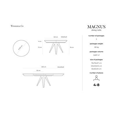 Тази трапезна маса със здрави метални крака може да се справи с безброй празненства, а благодарение на разтегателната си конструкция винаги има място за неочаквани гости. Нейната непреходна форма гарантира, че тя ще бъде оценена от бъдещите поколения и няма да загуби нищо от красотата си при правилна грижа. Windsor & Co Sofas е френска марка, която проектира мебели с първокласно качество. Всички мебели са базирани на техни собствени проекти, които съчетават утвърдена във времето класика с иновативни идеи.