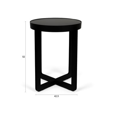 Масата има метална конструкция с прахово покритие и лакиран плот от МДФ. Минималистичният ѝ дизайн и кръглата ѝ форма я правят подходяща както за модерни, така и за класически пространства.