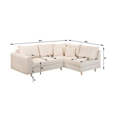 От рипсено кадифе, десен ъгъл/L форма, бежов, триместен, ширина 231 cm