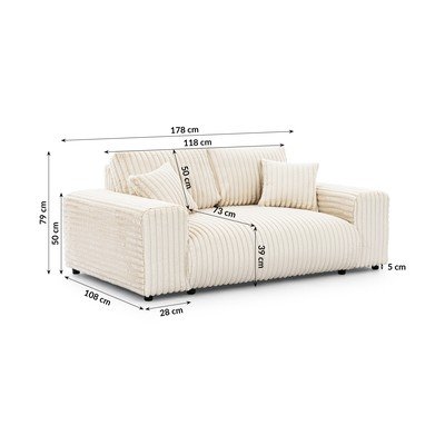 Кремав диван от рипсено кадифе 178 cm Justin – Ropez
