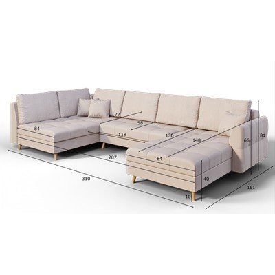 Десен ъгъл/U форма, бежов, други, ширина 310 cm