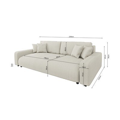 От рипсено кадифе, сгъваем/с място за съхранение, кремав, триместен, ширина 234 cm