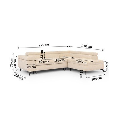 ШениловПозициониране/сгъваем/с място за съхранениеДесен ъгъл/L формаКремавПодходящ за домашни любимци/устойчив на петнаЧетириместенШирина 275 cm