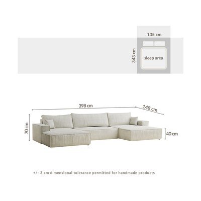 Шенилов, сгъваем/с място за съхранение, U форма, кремав, други, ширина 398 cm, дълбочина 148 cm, дълбочина на седалката 65 cm