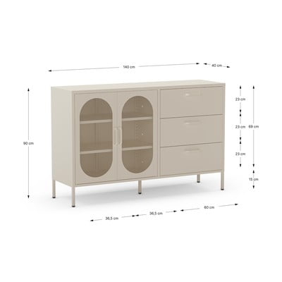 Метален, oбработка на повърхността: прахово покритие, кремав, ширина 140 cm, височина 90 cm, дълбочина 40 cm