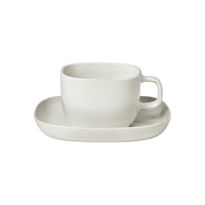 Чашата е изработена от висококачествена керамика и е завършена с гланцова глазура, която се допълва от деликатен пунктиран десен. Съдовете са изпечени при висока температура от 1200 °C, което гарантира тяхната издръжливост.