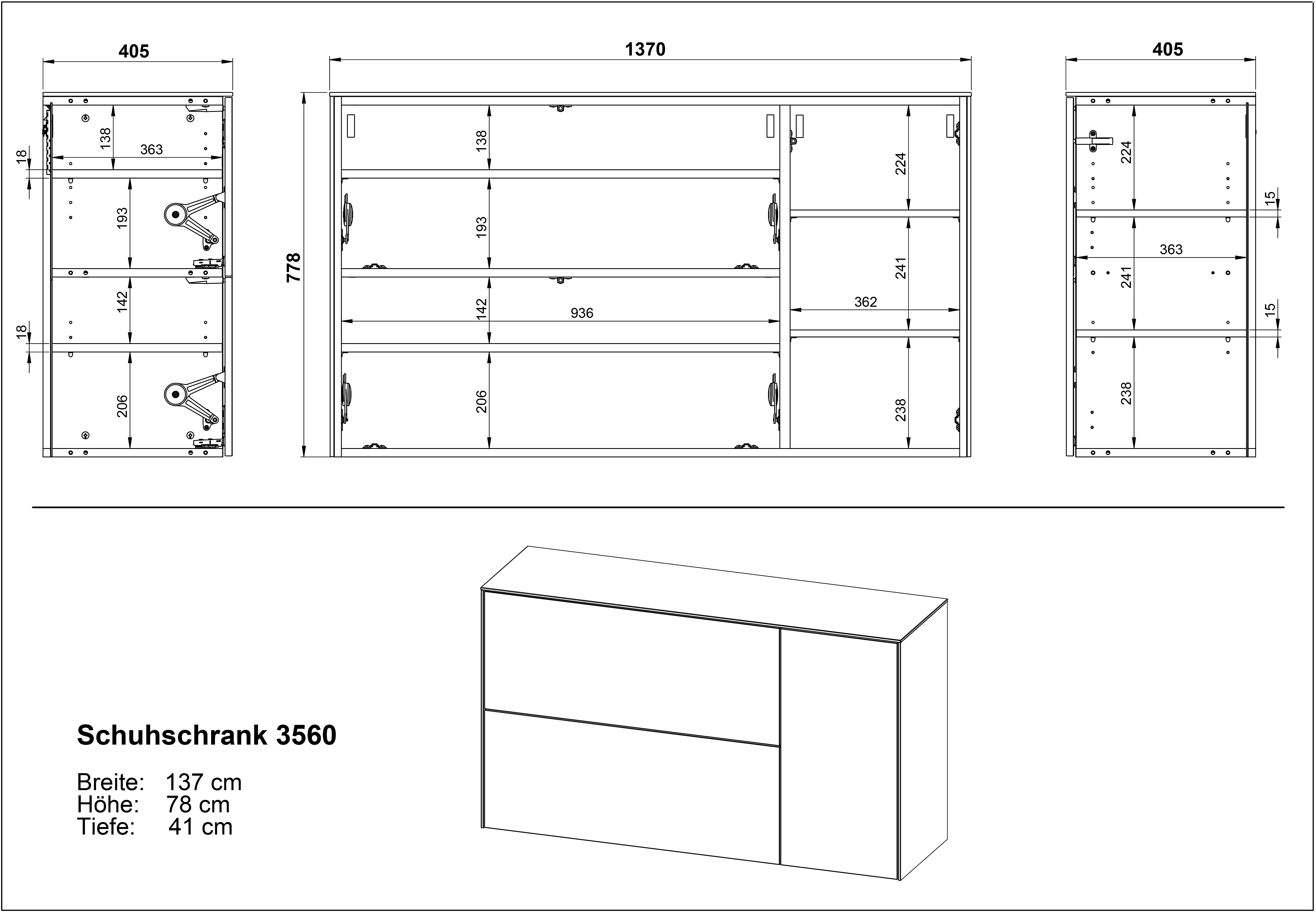 ВисящаПДЧOбработка на повърхността: меламинКремаваБрой чифтове обувки 22 Ширина 137 cmВисочина 78 cmДълбочина 41 cm