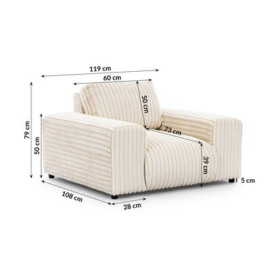 Кремаво кресло от рипсено кадифе Justin – Ropez