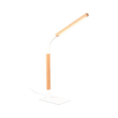 LED, с огъваща се структура/затъмняваща се, с дървен абажур, дървена/метална, за контакт, бяла/в естествен цвят, височина 73,5 cm
