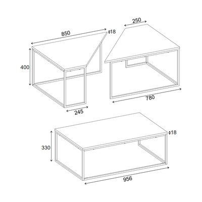 Масички за кафе в комплект от 3 бр. с дъбов плот 70x110 cm Titan – Marckeric