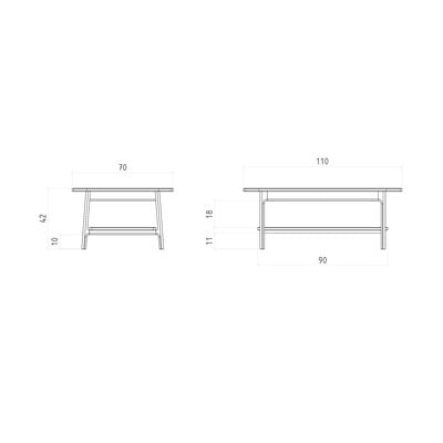 От масивен дъб, в естествен цвят, 70x110 cm, височина 42 cm