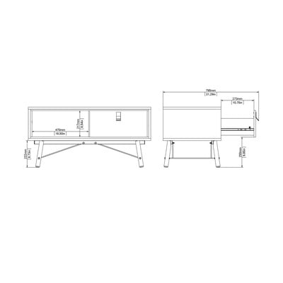 С размери 48x102 см тя се вписва във всяка всекидневна. Тя предлага отворено пространство за съхранение и голямо чекмедже за поддържане на ред. Дървеният плот и черните метални кръстосани крака създават модерна и елегантна визия. Семплият дизайн се вписва идеално в съвременните интериори.