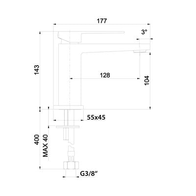Допълнете умивалника си с този минималистичен смесител с месингов лост. Той е снабден с керамичен патрон с диаметър 25 мм. Освен това има връзка G3/8".