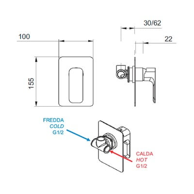 Този вграден месингов смесител е проектиран само за един изход и следователно е свързан с ръчен или главен душ. Тъй като се доставя поотделно, всички аксесоари трябва да се закупят отделно. Всъщност, освен смесителя, в комплекта е включено само необходимото за монтажа монтажно тяло.