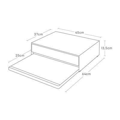 Възползвайте се максимално от кухненското си пространство с този рафт с чекмедже, който незабавно разширява работната ви площ, когато тя е частично заета от малки уреди. Дължината на рафта, който може да се монтира над и под чекмеджето, може да се регулира от 39 до 64 см. Въпреки че товароносимостта на горната част е 17 кг, чекмеджето и рафтът могат да носят до 3 кг товар, като на горната част трябва да има поне 2 кг товар.