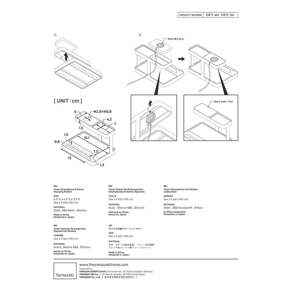 Удобната стойка от Yamazaki ви позволява да съхранявате и зареждате всичките си устройства на едно място. В горната част има отвор за кабел и силиконова подложка за вашия смарт часовник. В долната част има държач за вашия телефон, таблет и място за други аксесоари.