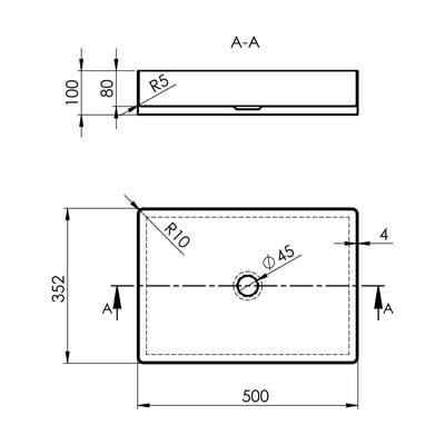 От неръждаема стомана, в меден цвят, ширина 50 cm, дълбочина 35 cm, височина 10 cm
