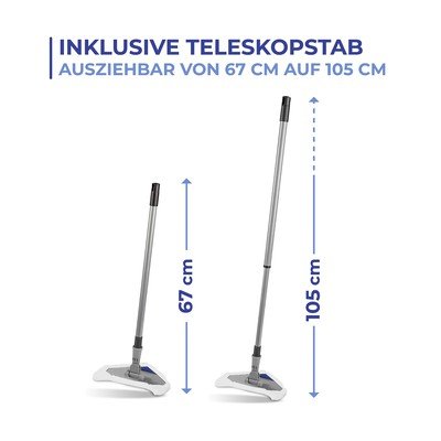 За удобно боравене телескопичната дръжка може да се регулира индивидуално по дължина, като варира от 67 до 105 см. Това улеснява достигането дори до труднодостъпни места.