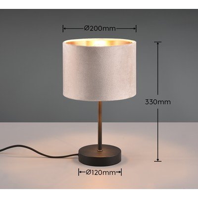 С текстилен абажур, метална, за контакт, черна/бежова, височина 33 cm