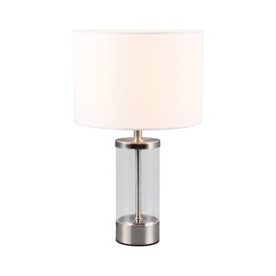 С текстилен абажур, метална/текстилна, за контакт, в сребрист цвят, височина 33,5 cm