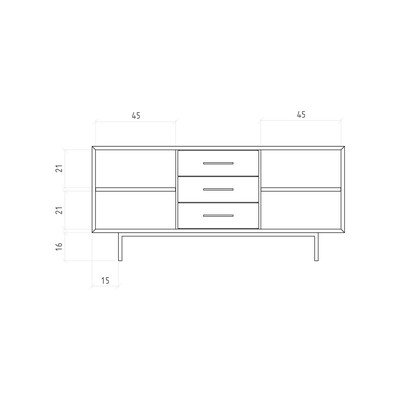 От масивен дъб, oбработка на повърхността: обработен с масло, в естествен цвят, ширина 144 cm, височина 65 cm, дълбочина 45 cm