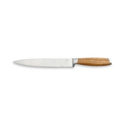 Нож за филетиране от неръждаема стомана от Холм. Дръжката му от акациева дървесина с отличителна шарка приляга удобно в ръката, а висококачественото острие от неръждаема стомана осигурява прецизно рязане.