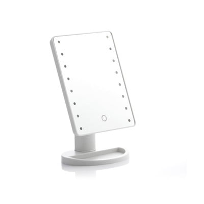 Евтино, практично огледало, добре разположено осветление и подходящ размер. Дори в тъмна стая светодиодите осветяват лицето достатъчно.