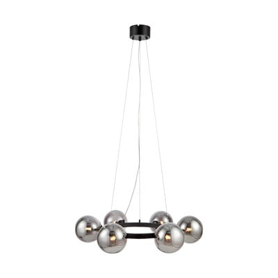 Висящо осветително тяло CircleСъс стъклен абажур, метално/стъклено, черно/в сребрист цвят, височина 165 cm