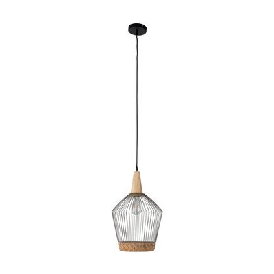 Висящо осветително тяло BirdyС ратанов абажур, дървено/метално/ратаново, черно/кафяво, ø 12 cm, височина 150 cm