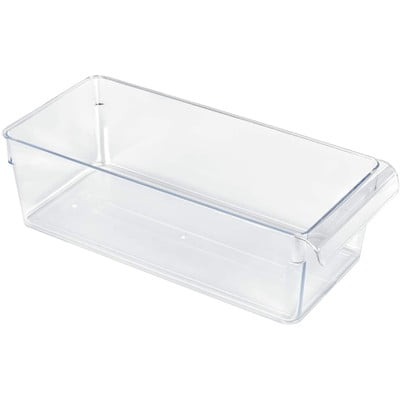 Органайзер от плексиглас в цялата дълбочина на хладилника. Среден размер за съхранение на средни продукти, лук, чесън и др. Не знам обаче колко е усто...