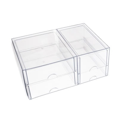 Органайзерът е разделен на две секции една до друга. Всяка секция предлага две изтеглящи се чекмеджета, които имат удобен полукръгъл изрез за лесно отваряне.