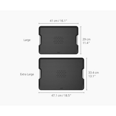 Дъската за рязане Cut&Carve на Joseph Joseph е практичен кухненски помощник, който има две приложения. Нейната наклонена повърхност е проектирана така, че да отвежда излишните течности към задния ръб, което ще оцените, когато режете сочно месо например.