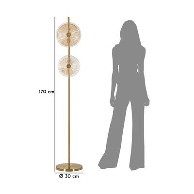 Със стъклен абажур, в златист цвят, височина 170 cm