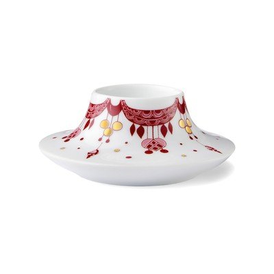 Свещникът с мотив в червено и златисто е подходящ за популярната