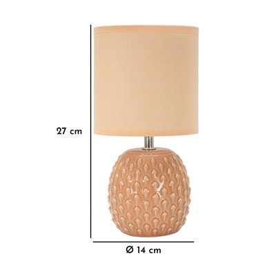 С текстилен абажур, керамична, за контакт, прасковена, височина 27 cm