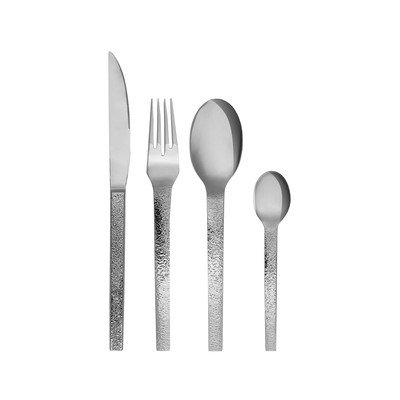 Дръжките му са украсени със стилна текстурирана повърхност, която придава на целия комплект модерен вид. Отделните прибори за хранене са с височина 24, 21, 20 и 15 см. Този комплект перфектно съчетава непреходна елегантност с практичност.