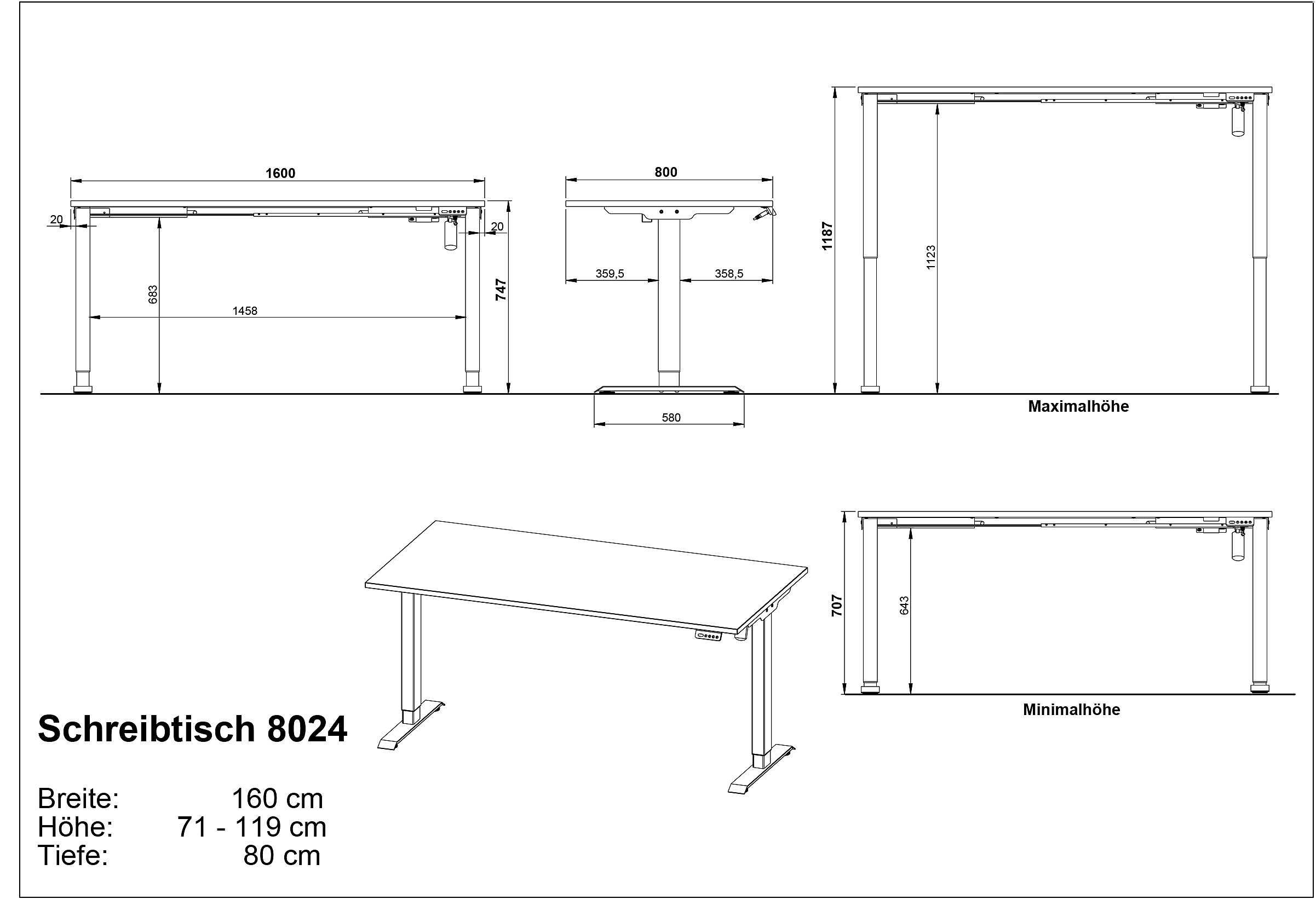 Открийте работното бюро Boras от Germania, което съчетава модерен дизайн и функционалност. Това бюро с електрическо регулиране на височината (71-119 см) и два Т-образни крака ви позволява лесно да адаптирате работната си среда към вашите нужди. Повърхността на масата е устойчива на надраскване, което гарантира дълъг експлоатационен живот. Идеалният избор за тези, които търсят гъвкавост и комфорт на работното място.