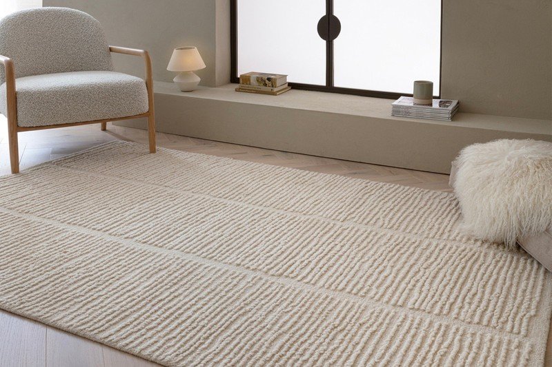 Килимът Zennith от Asiatic Carpets е ръчно тъкан вълнен килим, вдъхновен от скандинавския дизайн.