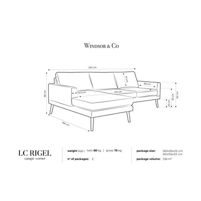 Ляв ъгъл, жълт/в естествен цвят, ширина 156 cm