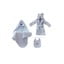 Този бебешки комплект "Еднорог" включва халат за обличане, подходящ за деца от раждането до двегодишна възраст, кърпа за баня с качулка с размери 70 x 70 cm и лигавник с размери 25 x 25 cm.