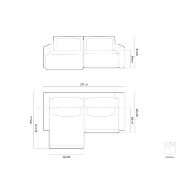 Сгъваем/с място за съхранение, десен ъгъл/ляв ъгъл/променлив, розов, триместен, ширина 240 cm