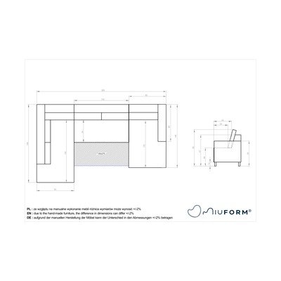 Забележка: Диванът има по-дълъг ляв ъгъл, когато се гледа отпред.