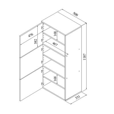 ПДЧOбработка на повърхността: меламинДекор от матирано дървоВ естествен цвятБрой чифтове обувки 18 Ширина 50 cmВисочина 119 cmДълбочина 33 cm
